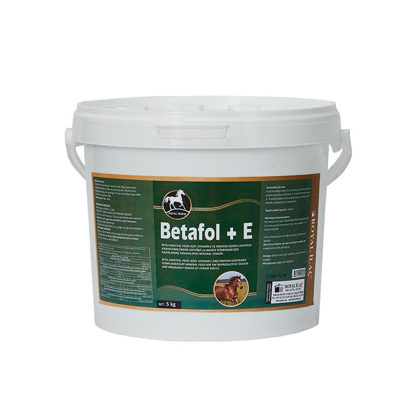 Beta Karoten+Folik asit+Vit E: Kış aylarına rastlayan üreme mevsiminde; gün ışığı ve yeşil beslenme yetersizliği, kısrakların üreme fonksiyonlarını etkileyen beta karoten, folik asit ve E vitamini düzeylerinin normal değerlerin altına düşmesine neden olur. Proteinle zenginleştirilen Betafol+E; vitamin düzeylerini yükselterek,