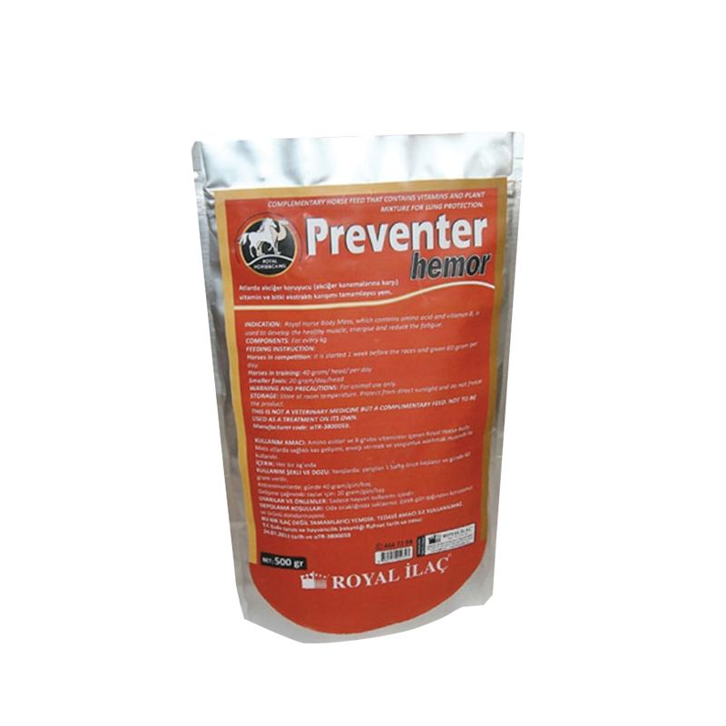 Atlarda akciğer koruyucu (akciğer kanamalarına karşı) vitamin ve bitki ekstraktı karışımı, tamamlayıcı yem.